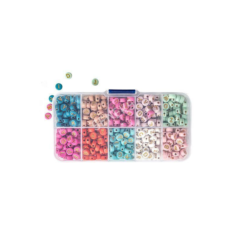 - ovalūs, įvairių spalvų karoliukai - raidės (7 x 4 mm)
