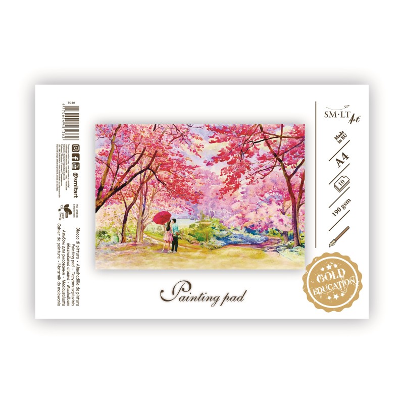 Tapybos sąsiuvinis. Dydis A4, 10 lapų, 190 gsm. Geriausiai tinka drėgnoms piešimo technikoms.