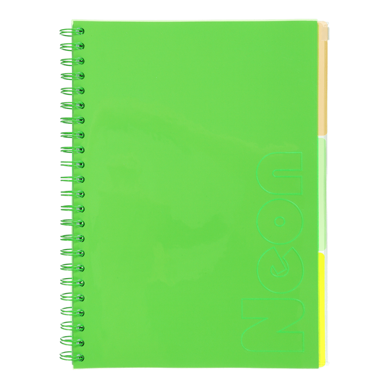 Sąsiuvinis su spirale, plastikiniu viršeliu NEON A4 120lap., lang., šv.žalias