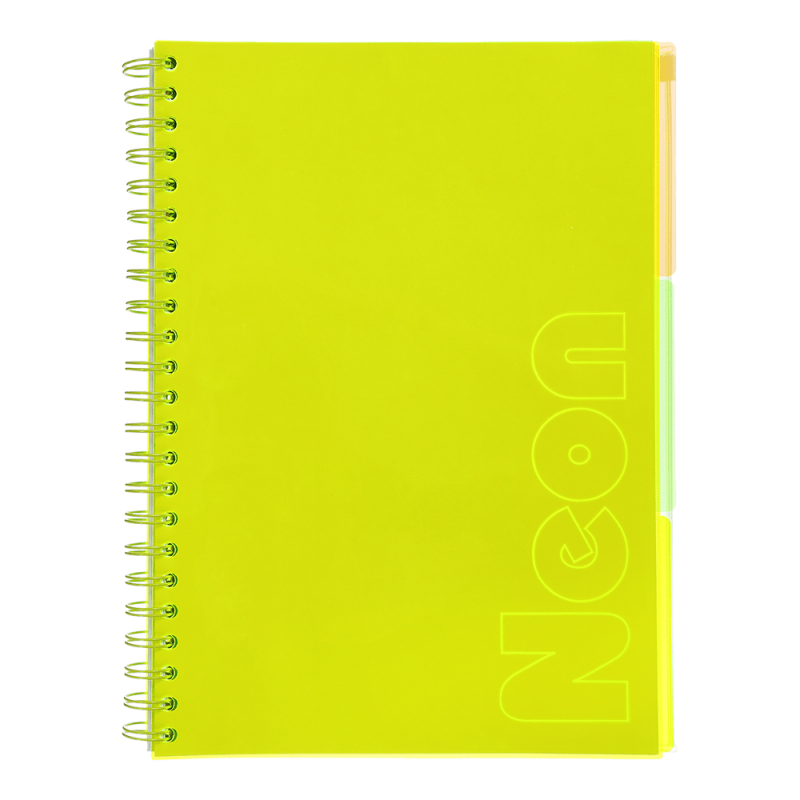Sąsiuvinis su spirale, plastikiniu viršeliu NEON A4 120lap., lang., geltonas