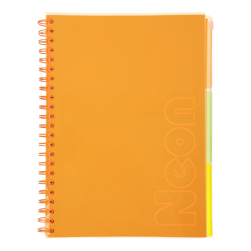 Sąsiuvinis su spirale, plastikiniu viršeliu NEON A4 120lap., lang., oranžinis