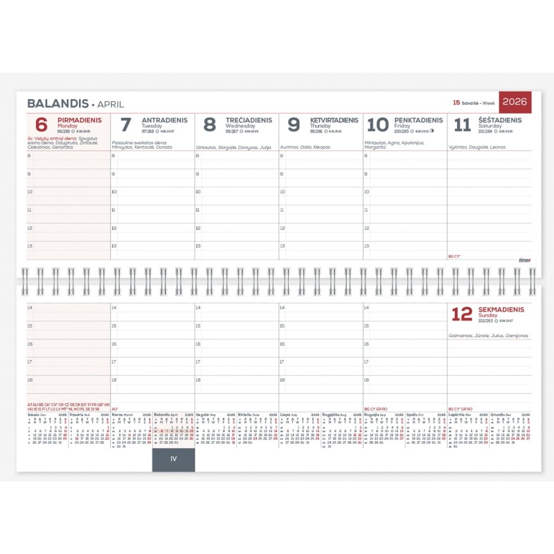 • Atvartas: vienas puslapis skirtas visai savaitei. Dienos laikas nuo 8 iki 18 val.